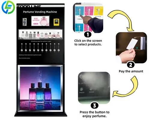 Foodline Perfume Dispenser Vending Machine is a fully automatic fragrance vending solution designed for shopping malls, airports, hotels, gyms, beauty stores, and premium commercial spaces. The fragrance vending machine is a smart retail machine that automatically dispenses measured amounts of perfume into bottles or spray containers after payment. Customers can choose different fragrance types, sizes, or brands via a touchscreen interface.