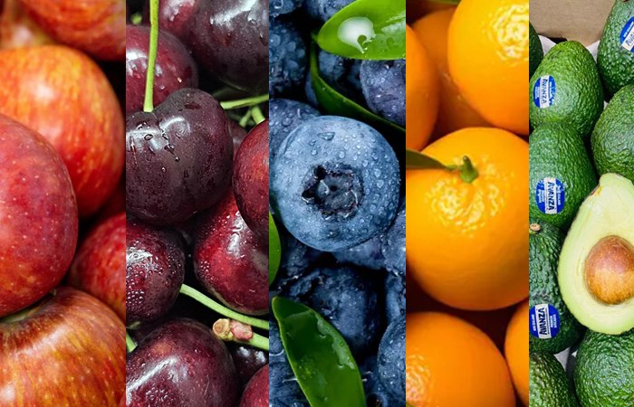 Apples / Oranges & citrus / Avocados / Mangoes / Tomatoes / Blueberries & berries